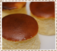 通常チーズケーキは、180℃〜190℃の温度で焼き上げますが、とろまーじゅは、210℃以上の高温で焼き上げます。高温で焼きあげることで、日持ちするのも特徴です。